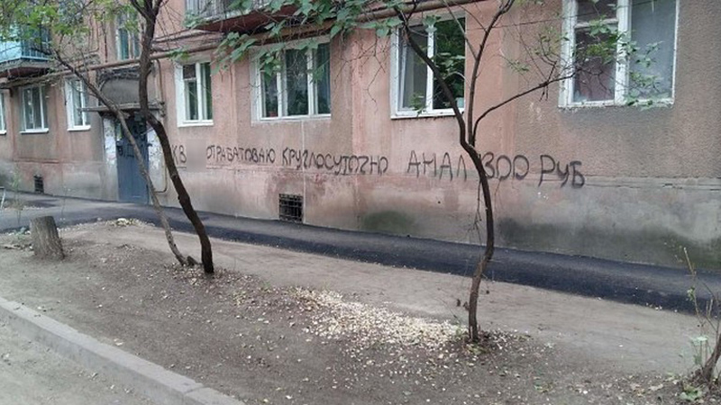Надписи появились на фасадах домов на улицах Полтавская и Тельмана.