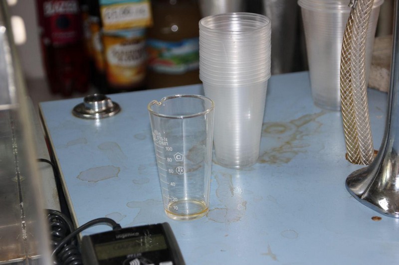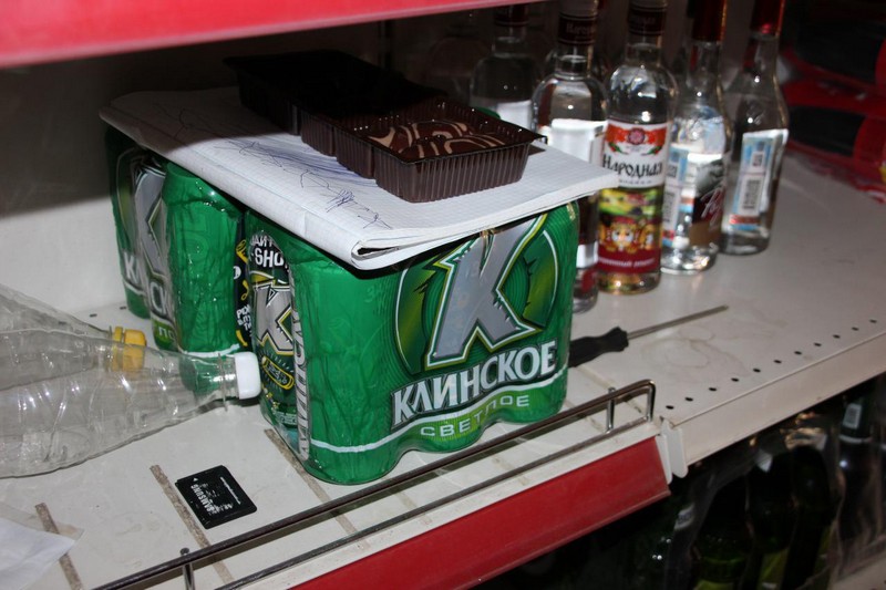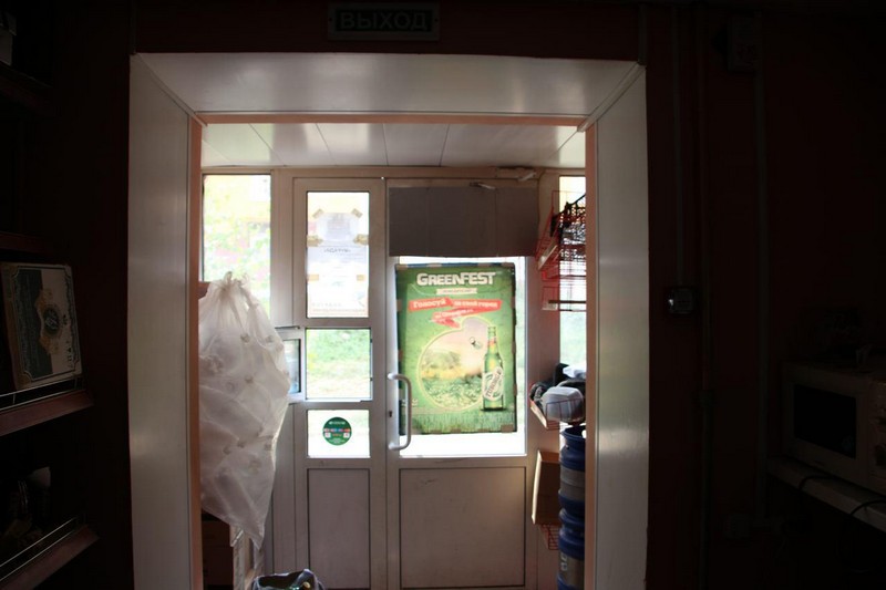 «В заведении отсутствует зал для гостей, а стол для «посиделок» с рваной и грязной клеенкой выносят прямо к месту продажи. Нет ни меню, ни прайс-листов. Сама площадь кафе не соответствует установленным нормам, повсюду грязь, подсобное помещение тут же – ничем не отделено и не огорожено. К тому же мы нашли просроченную водку. Товарное соседство отсутствует: в холодильной камере рядом лежит сушеная рыба и молоко. Мерный стаканчик для налива алкоголя видимо не мыли уже очень давно. Такого в природе быть не должно. Забегаловка, по-другому не скажешь. А ведь во дворе находится детская площадка, понятно, почему жители этого дома жалуются на такое соседство».