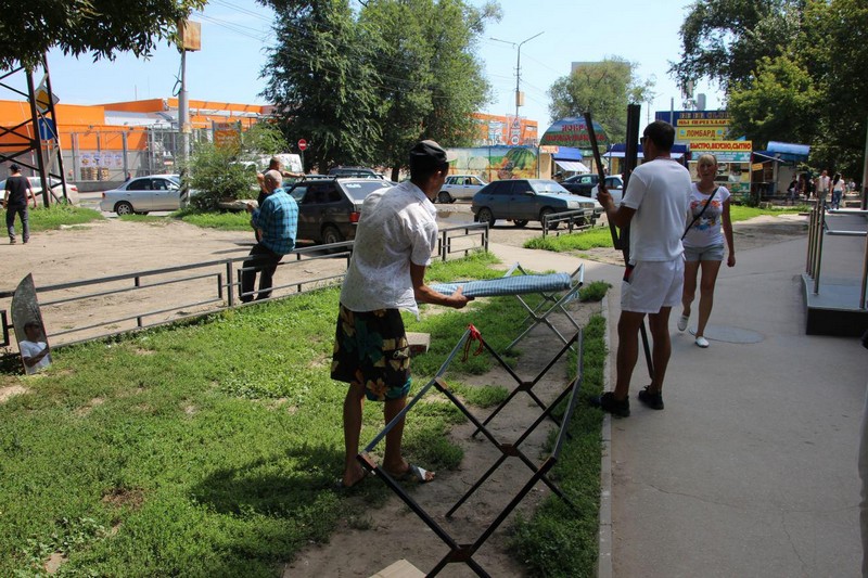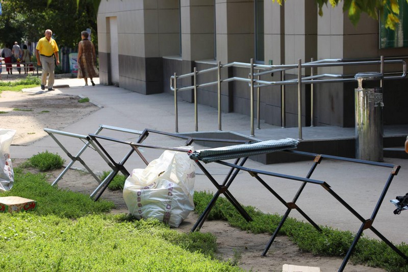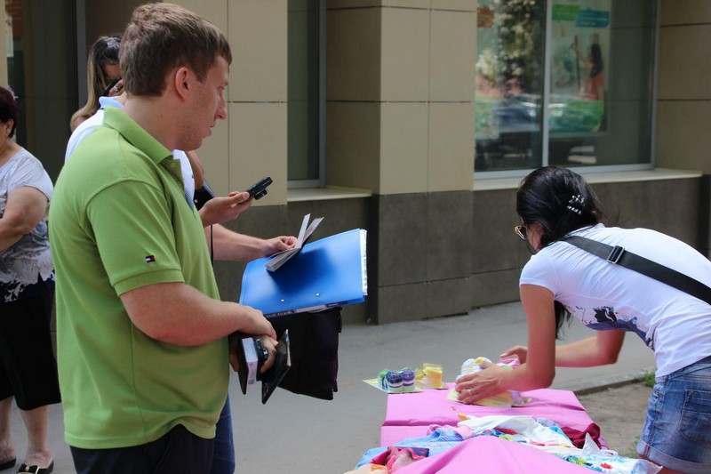 Первой точкой маршрута стал центр Заводского района. Напротив ТЦ «Оранжевый» торговцы организовали мини-рынок, на котором продавали овощи, колбасу, нижнее белье, носки и платки. Некоторые, увидев представителя власти, полицию и журналистов, бросились бежать, другие спешно собирали свои вещи.
