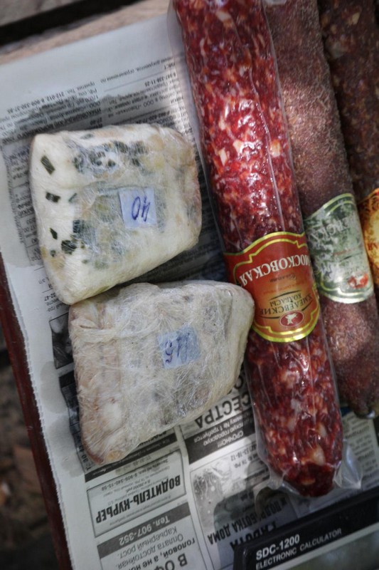 По ее уверениям, она бегает домой несколько раз за день. Т.е., если торговка сказала правду, полукопченая колбаса замораживается снова и снова, в ожидании несведущего покупателя.