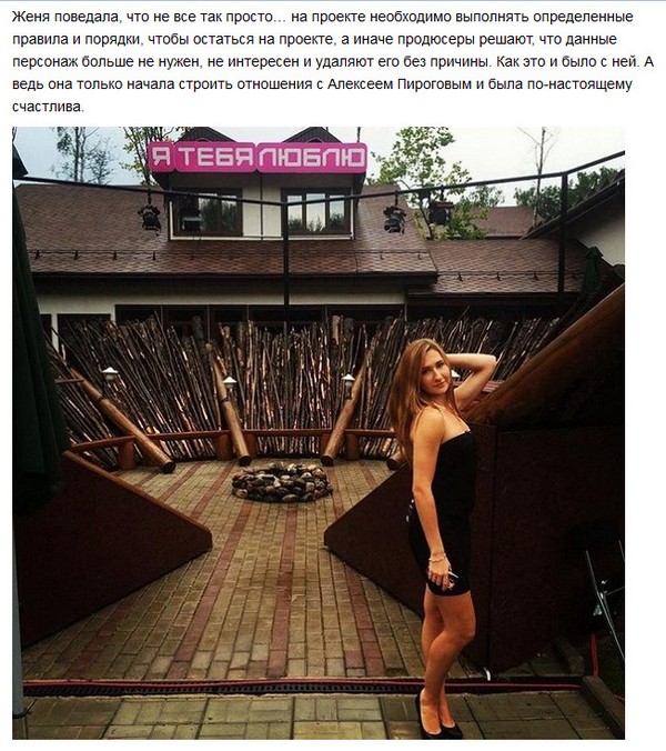 Об уходе Перец из проекта станет известно телезрителям в одном из ближайших выпусков. Саратовчанка начала строить отношения с Алексеем Пироговым, однако организаторы проекта решили убрать ее на так называемой рокировке (двое новеньких пришли, а Перец ушла). Молодой человек сначала пошел за ней, якобы даже договорились, что Женя подождет в Саратове, пока он найдет квартиру в Москве, чтобы продолжить отношения. Но в последний момент передумал и остался.