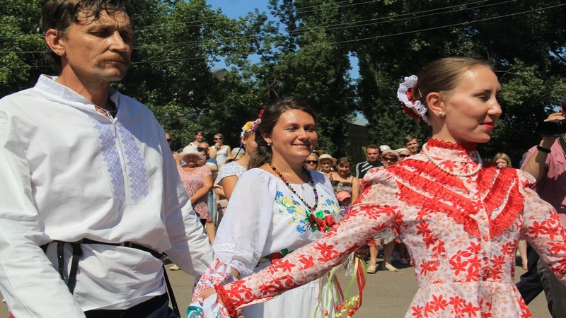 Одним из центральных моментов праздника стала казачья свадьба. Молодожены были уже не первой молодости и заметно тушевались. Их стеснительность и зажатость вызывала неподдельный гнев распорядительницы свадьбы. Зажав микрофон рукой, она с раздражением отдавала команды: «Идите сюда. Идите туда. Стойте». Тут же сыпала на молодых зерна, что-то запевала. Новобрачные казак и казачка ломали хлеб, соревновались, кто больший ломоть откусит, чтобы во всем уступать супругу. Для них устроили песни и танцы. За всем этим со сцены наблюдали руководители района, соискатель депутатского мандата. Они сгрудились в тенек и аплодировали выступлениям артистов.