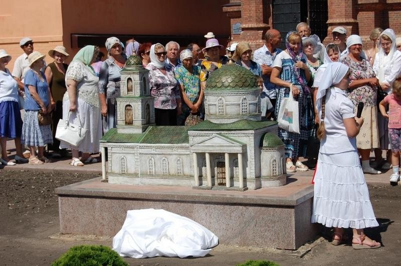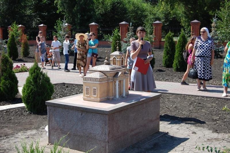В «Саду храмов» размещены керамические макеты пяти уничтоженных когда-то православных церквей города — собора Казанской иконы Божией Матери, Крестовоздвиженской церкви, Никольского храма, церкви во имя трех святителей и Вознесенского единоверческого храма.