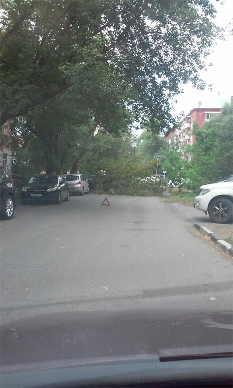 По предварительным сведениям, речь идет об участке улицы между Рабочей и Мичурина. Как видно на фотографии, дерево рухнуло поперек дороги так, что оказался заблокирован проезд. По последней информации, на месте работают сотрудники полиции. Есть ли пострадавшие среди людей, а также получили ли повреждение автомобили, неизвестно.
