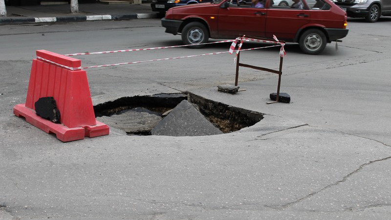 Как сообщает корреспондент «Четвертой Власти», провал появился как раз на месте, где недавно положили новый асфальт, а до этого велись вскрышные работы. Яма оказалась достаточно глубокой (примерно полметра), площадь около 2 кв.м.