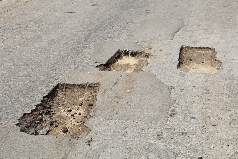 Стоит отметить, что точечный ремонт здесь проводится с особенностями. После прохождения повреждений фрезерной установкой, рабочие вручную, с помощью отбойных молотков, обрабатывают края ямок по периметру, чтобы создать зазубрины, которые после укладки асфальтовой смеси, будут обеспечивать дополнительное сцепление.