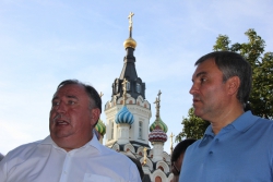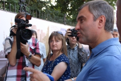 Вячеслав Володин остановился у проектов, размещенных на заборе городского сада. Здесь его ожидал главный архитектор города Виталий Желанов, который представил планы по реконструкции пешеходной зоны. Вячеслав Володин отметил, что этот проект создан «не под выборы», и поинтересовался, есть ли у проекта поддержка экспертного сообщества и общественности. Его заверили, что такая поддержка есть.