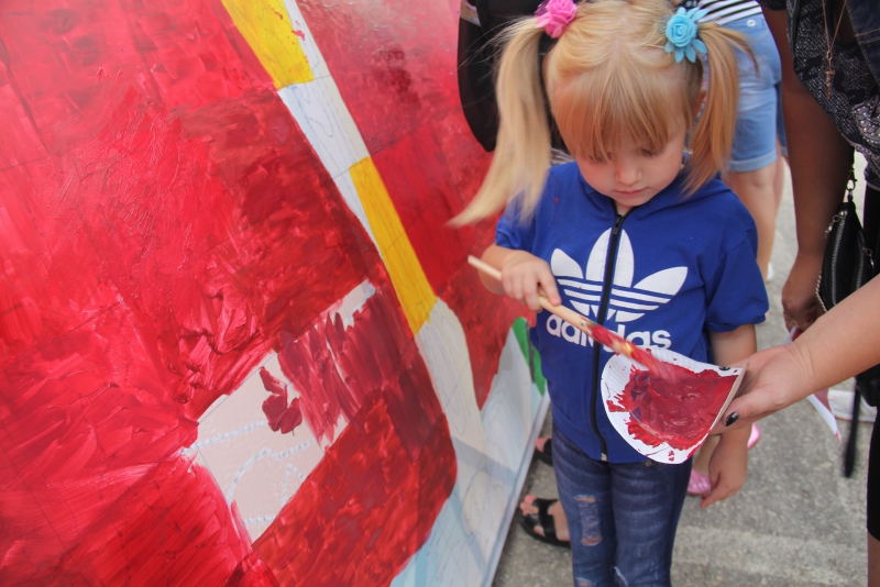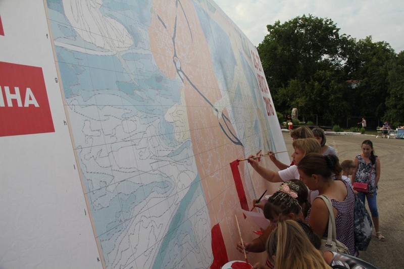 Во флешмобе приняли участие около 100 человек. Участниками стали не только взрослые, но и дети. 7-летняя Катя пришла вместе с мамой и братом. Долго выбирала, каким цветом воспользоваться. В конце концов остановила свой выбор на красном. «Ну вот, теперь ты тоже как Петров-Водкин», - подшучивали над девочкой, пока она усердно раскрашивала свой участок на полотне.
