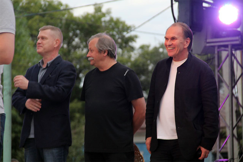 Перед собравшимися на площади выступили гости. Народный артист РФ Алексей Гуськов отметил, что он не смог отказаться от приглашения на фестиваль.