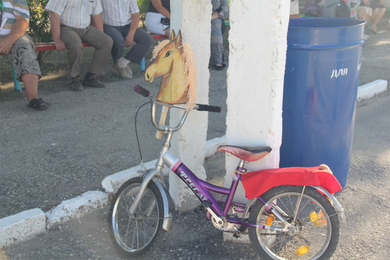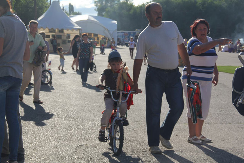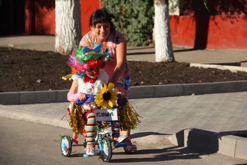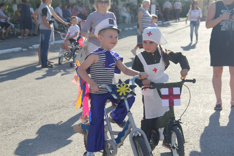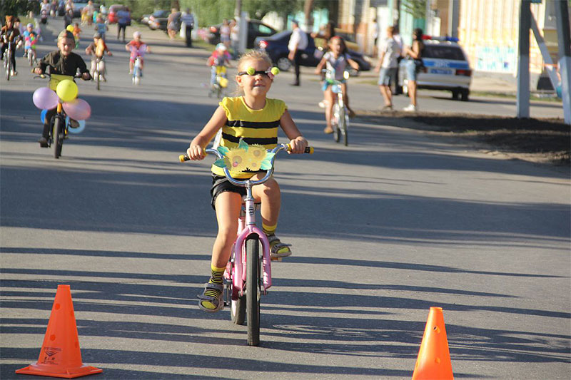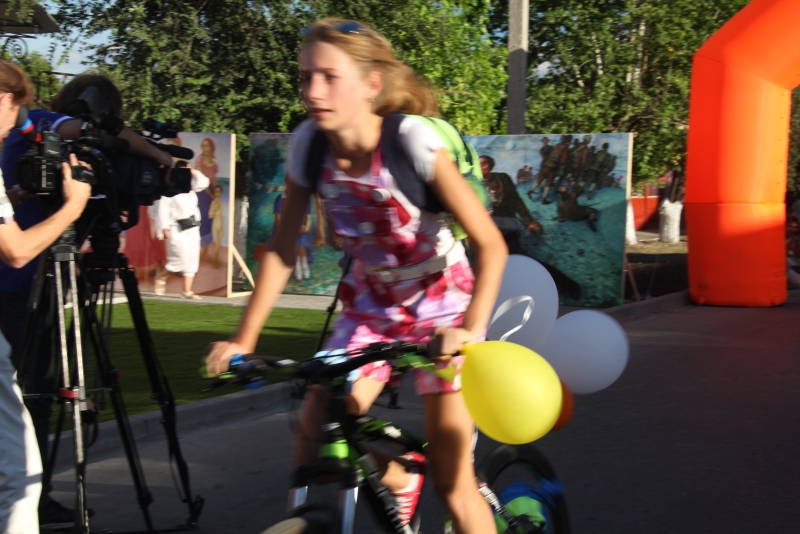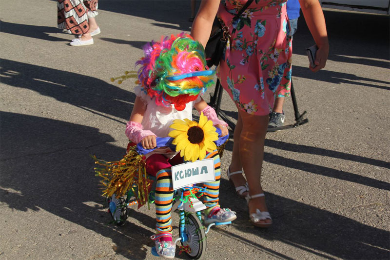 Он оказался необычным: вместе со спортсменами в нем приняли участие любители, жители райцентра. Самой маленькой участнице, девочке по имени Юля, 3 года, она прикатила на трехколесном велосипеде и в карнавальном костюме. Ребята постарше преобразили своих железных коней в пиратский корабль и красного скакуна. Девочки надели костюмы бабочек и сказочных зверей.