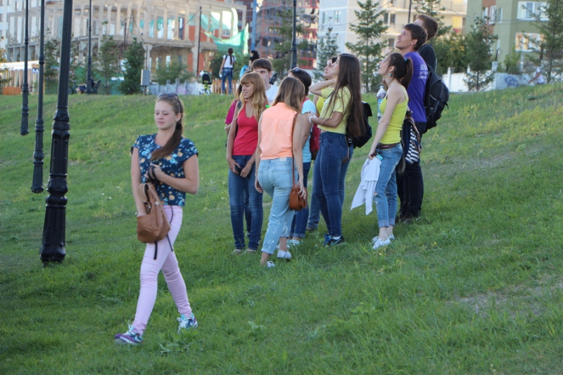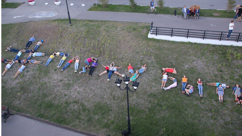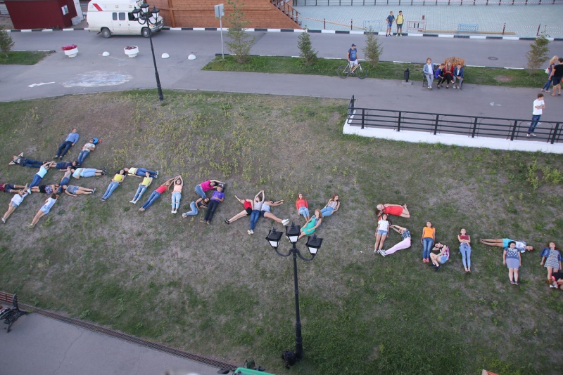 В рамках акции студенты разных вузов города на газоне посреди набережной легли в виде букв, изобразив надпись «#пляжубыть». Под этим хэштегом ведущие предложили публиковать зрителям свои фотографии в социальных сетях, чтобы популяризовать место будущего пляжа.