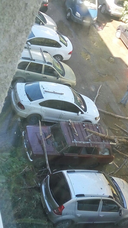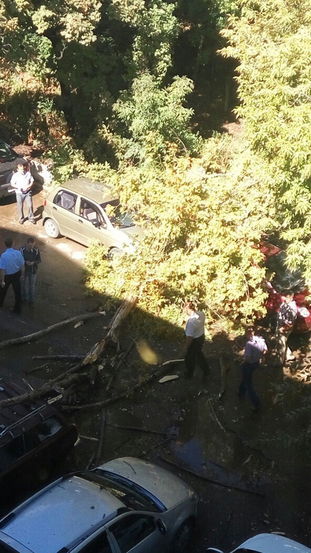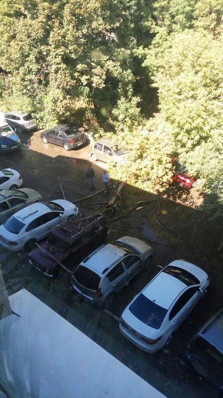 На Мурманском проезде рухнувшее дерево придавило 4 автомобиля. Данных о пострадавших также пока нет.