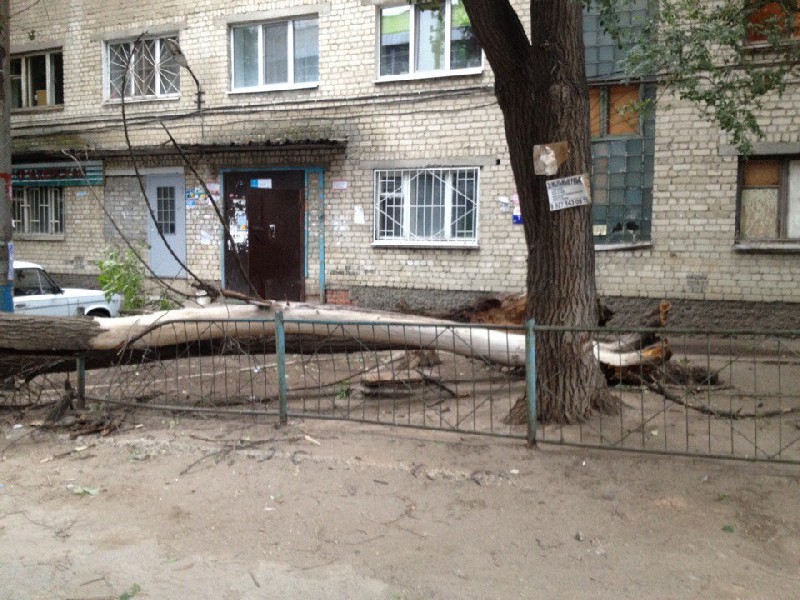 Во дворе дома 66 на улице Клочкова упало сухое дерево. По счастливой случайности люди не пострадали.