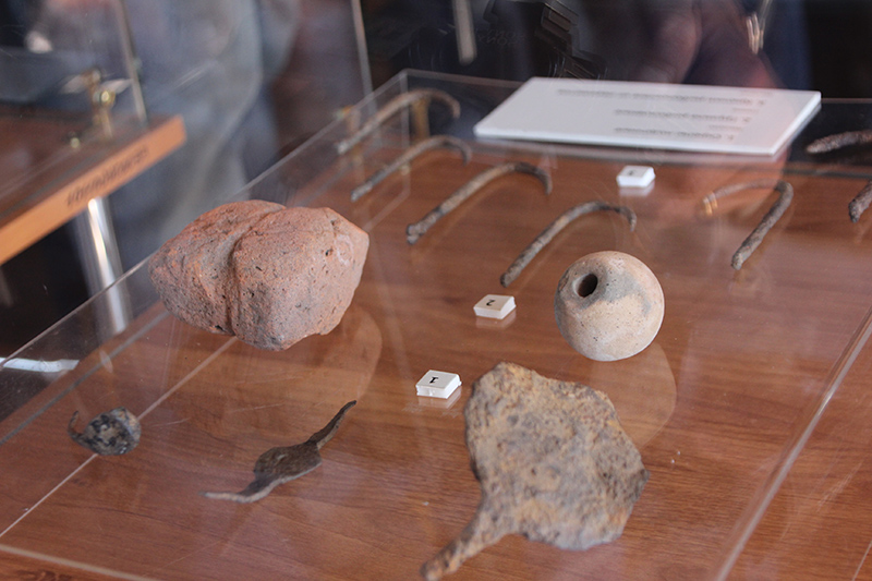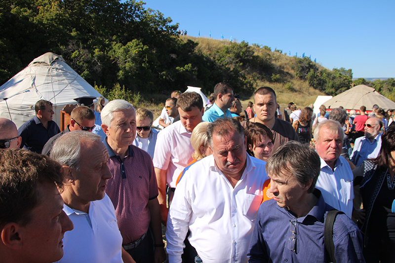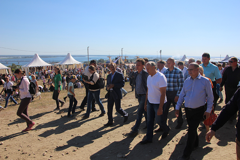 Делегация прошла через шатер с экспозициями Саратовского областного краеведческого музея, где, по словам Кубанкина, есть новые находки, которые пока не афишировались. Там Валерий Радаев увидел древние крючки для ловли рыбы. На это он многозначительно поднял вверх указательный палец и сказал: «Это означает, что здесь были русские люди!».