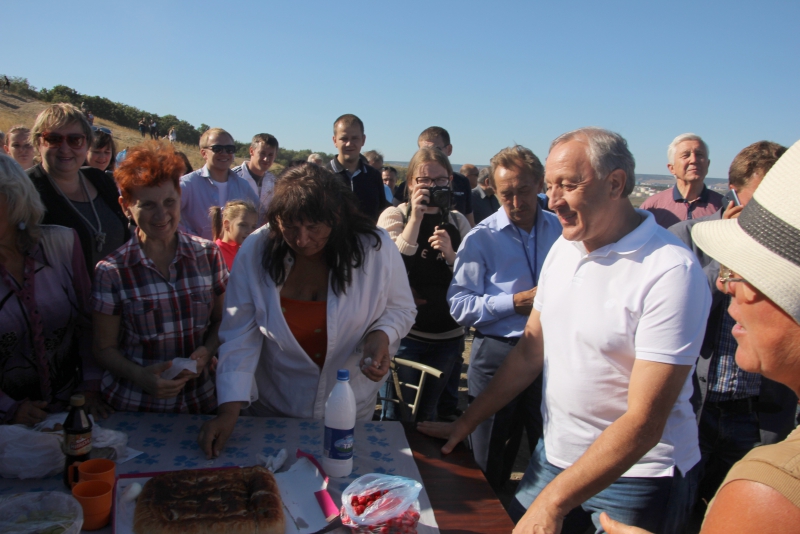 В конце прогулки Валерий Радаев оказался возле шатра со сладостями. Там одна из участниц фестиваля, завидев главу региона, закричала: «Мечта! Моя мечта! Увидеть губернатора!». Она вместе с другими женщинами принялась обнимать Радаева и угощать пирогом. После пламенных речей она внезапно сменила тему и сказала, что в поселке Солнечный спортсменам негде заниматься. Женщина сообщила, что сама приходится матерью волейболистке – чемпионке Олимпиады. В ответ Валерий Радаев сказал, что на самом деле осталось ждать недолго, ведь скоро появится ФОК «Газовик». Потом жалоба вновь сменилась на радость. Причем обращавшаяся к Радаеву гражданка упала на колени рядом с ним, то ли для совместного фото, то ли в знак благодарности. Затем гости отправились на обед.
