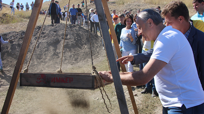 По прибытию губернатора Валерия Радаева в древний город Укек организатор проекта Дмитрий Кубанкин сопроводил его по основным площадкам инсталляции. В начале пути главе региона предложили временно стать археологом и попробовать добыть древний предмет. Для этого привезенную с археологической раскопки землю погрузили в сито, а Радаев просеял ее и обнаружил фрагменты древнего сосуда, не исключено, что со времен Золотой Орды.