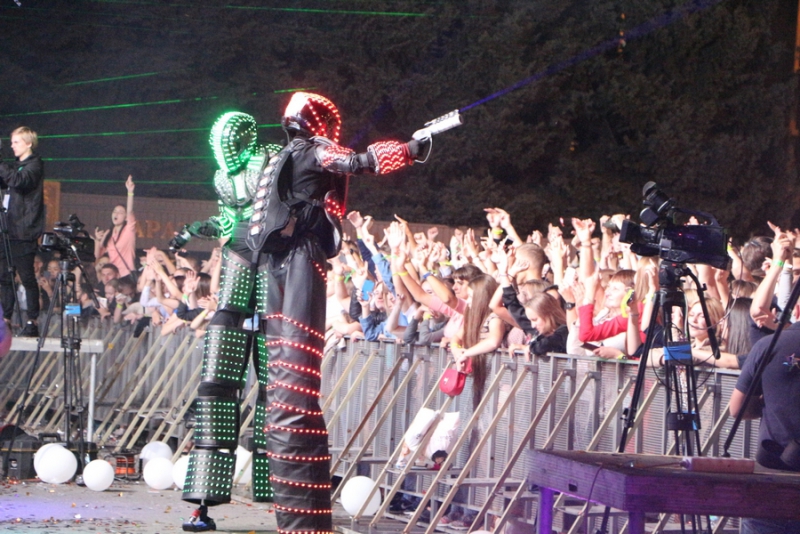 После того, как завершилась концертная программа выступлением известного диджея Леонида Руденко, рядом с площадью раздались залпы. Первокурсники снимали происходящее на камеры мобильных телефонов.