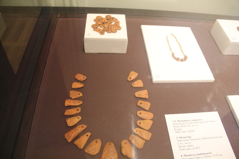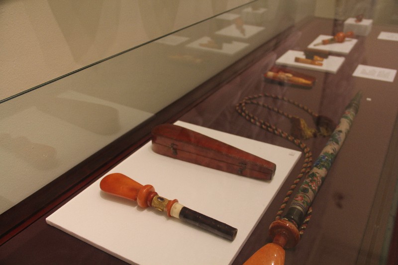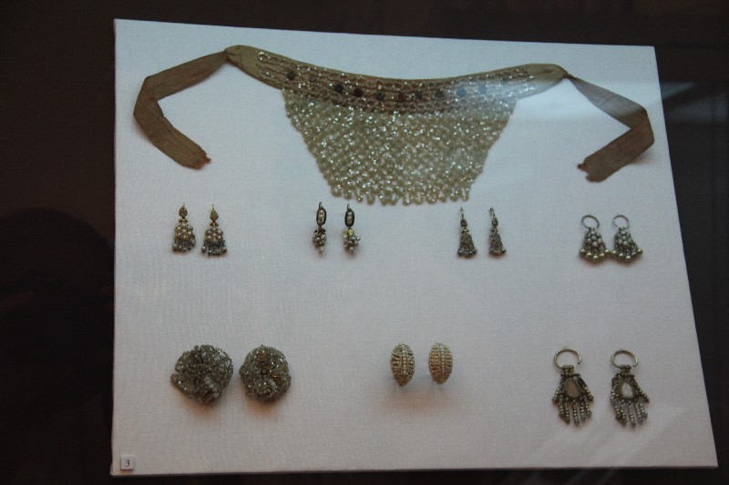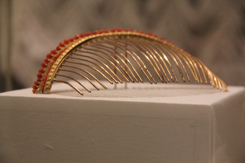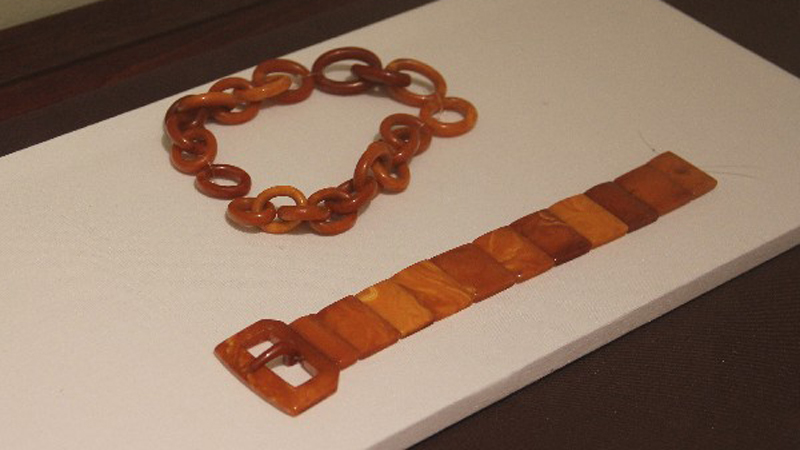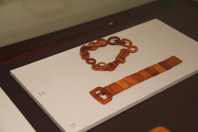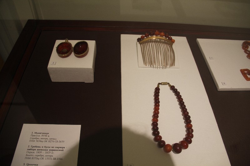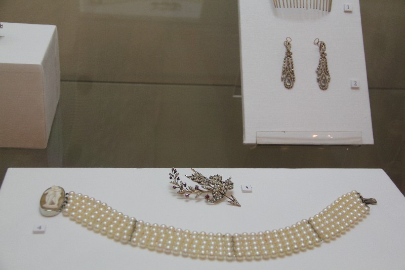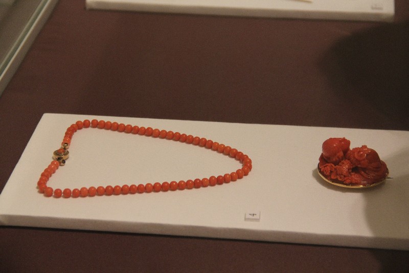 Особое внимание привлекают янтарные украшения, найденные во время археологических раскопок. Поражают мастерством исполнения колье из жемчуга, резные предметы из коралла. На выставке представлены работы итальянских мастеров середины XIX века.