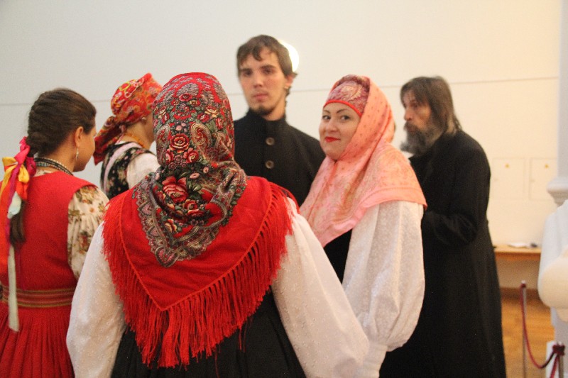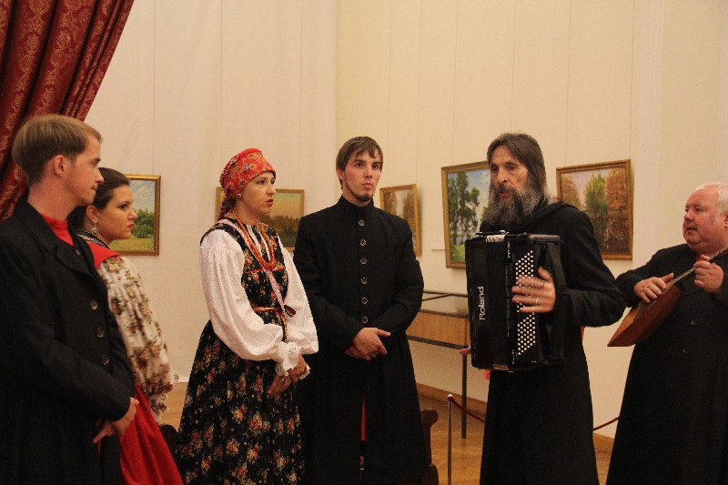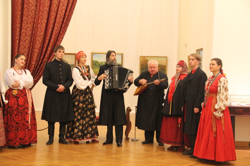После презентации все собравшиеся смогли посмотреть на размещенные в витринах экспонаты под аккомпанемент саратовского ансамбля «Балаган».