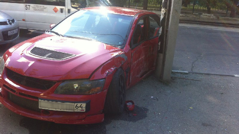 Сегодня утром в центре Саратова разбился спортивный автомобиль «Мицубиси Лансер Эволюшн IX». Об этом сообщили очевидцы в группе «Саратов онлайн» в соцсети «ВКонтакте».