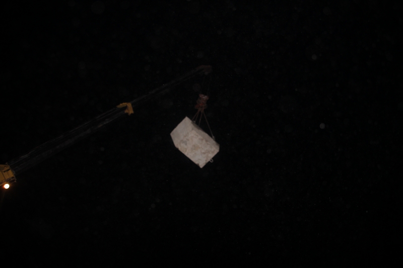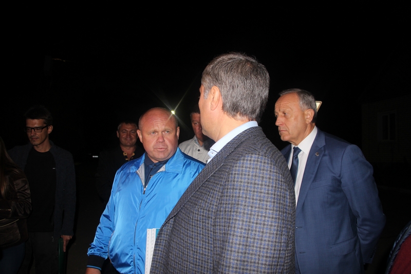Гостей встретил руководитель фирмы-подрядчика, депутат Саратовской городской думы Александр Исаев. Несмотря на темноту, на стройке работал подъемный кран.