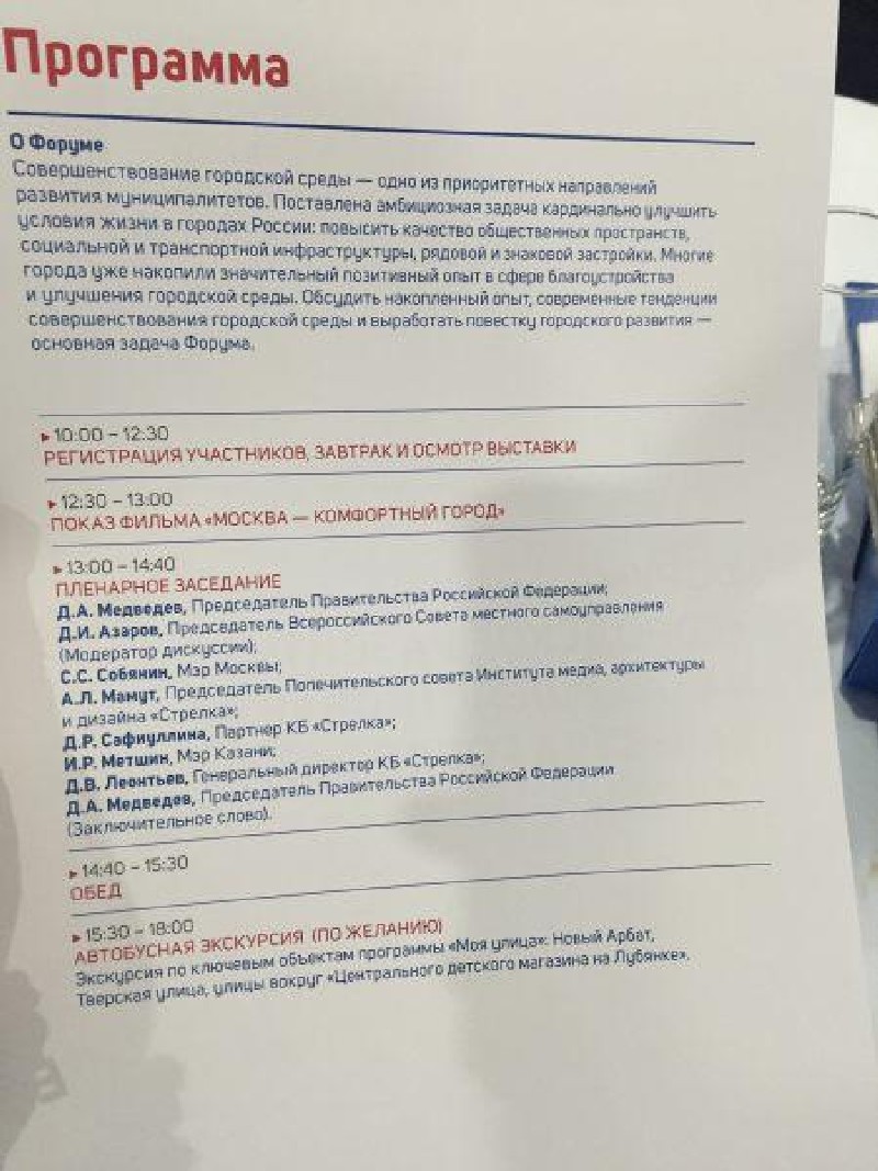 Мероприятие посвящено вопросам улучшения условий жизни в российских городах - повышению качества общественных пространств, социальной и транспортной инфраструктуры, застройки.