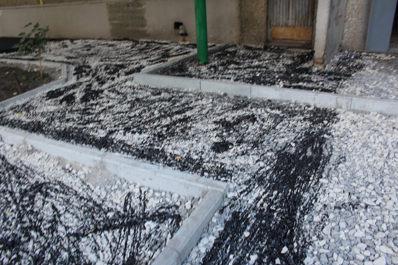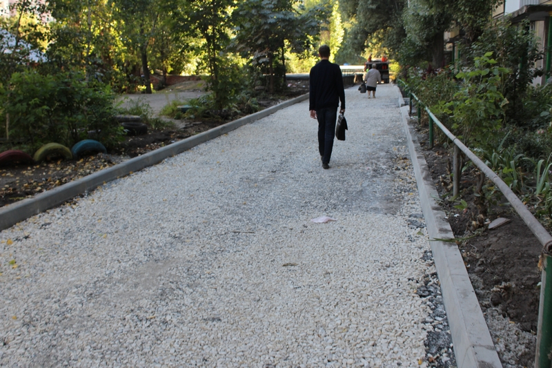 В настоящее время здесь территорию покрыли щебнем и теперь начали класть асфальт на тротуарах. Глава администрации Октябрьского района Александр Поимцев рассказал, что подрядчику пришла партия щебня марки 400, что не соответствует нормативу.