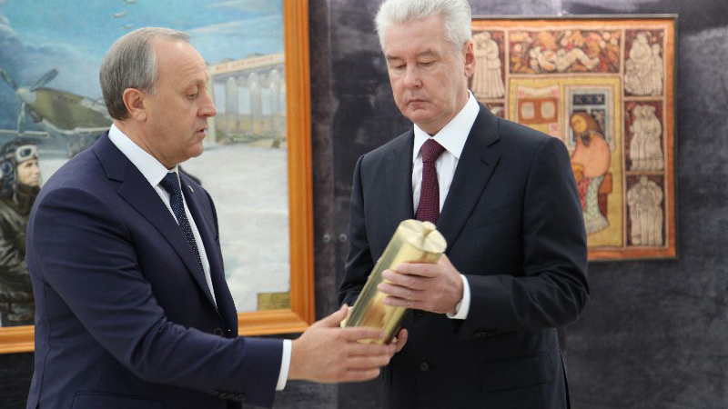 После этого в торжественной обстановке губернатор Радаев передал мэру Москвы капсулу с землей с Братской могилы Воскресенского кладбища, где похоронено более 8 тыс. бойцов, в том числе 800 защитников Москвы. Сергей Собянин сделал памятную запись в Книге Почетных гостей: «Вечная память героям», сообщает пресс-служба музея трудовой и боевой славы.