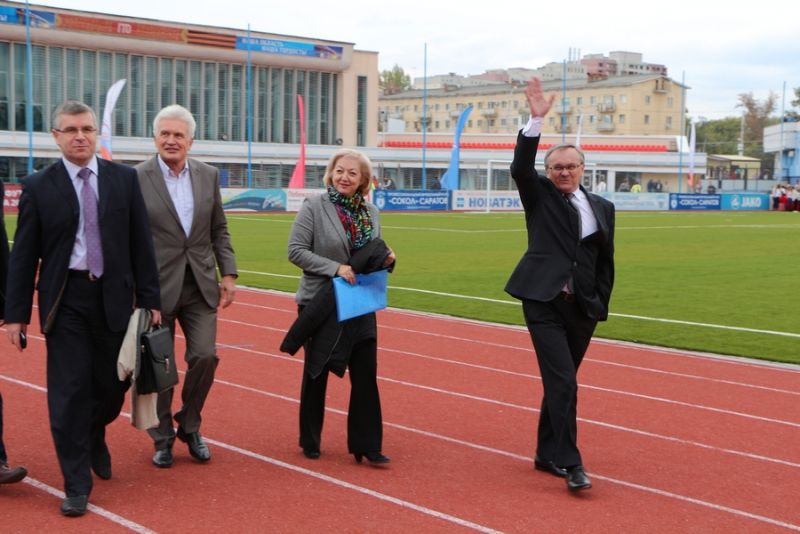 Церемонию на стадионе «Локомотив» посетили губернатор Валерий Радаев, чиновники областного правительства и представители китайской делегации.