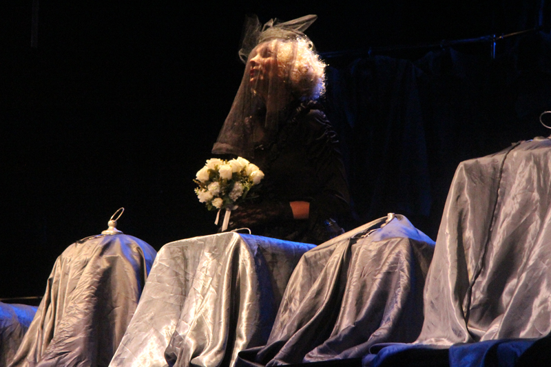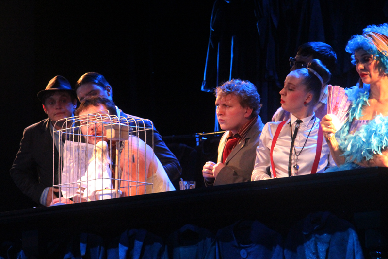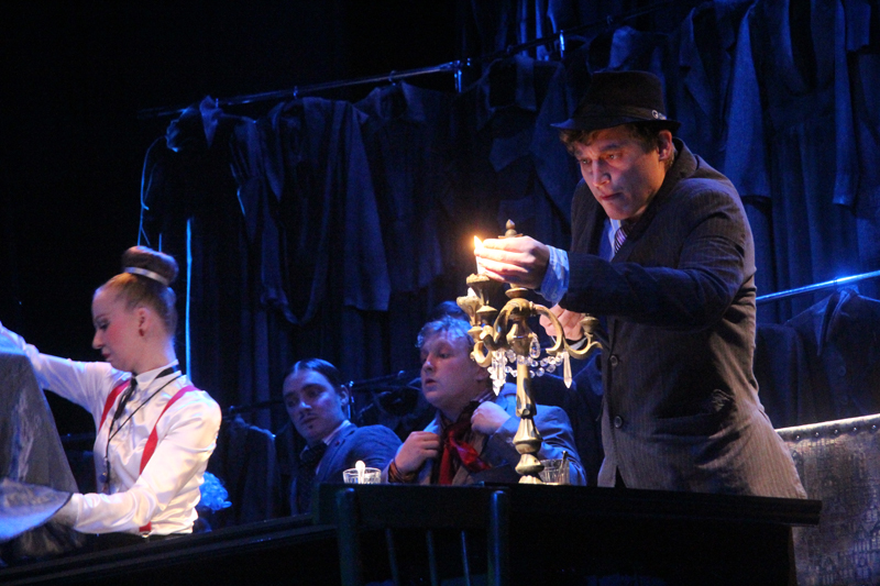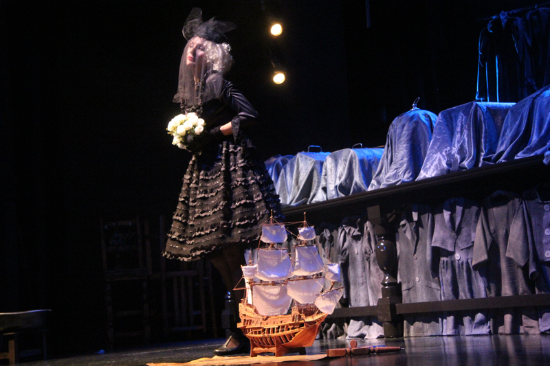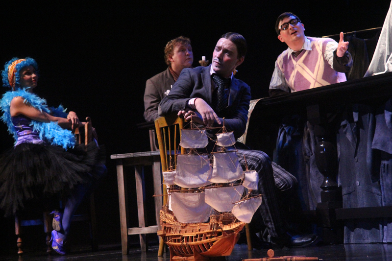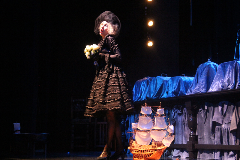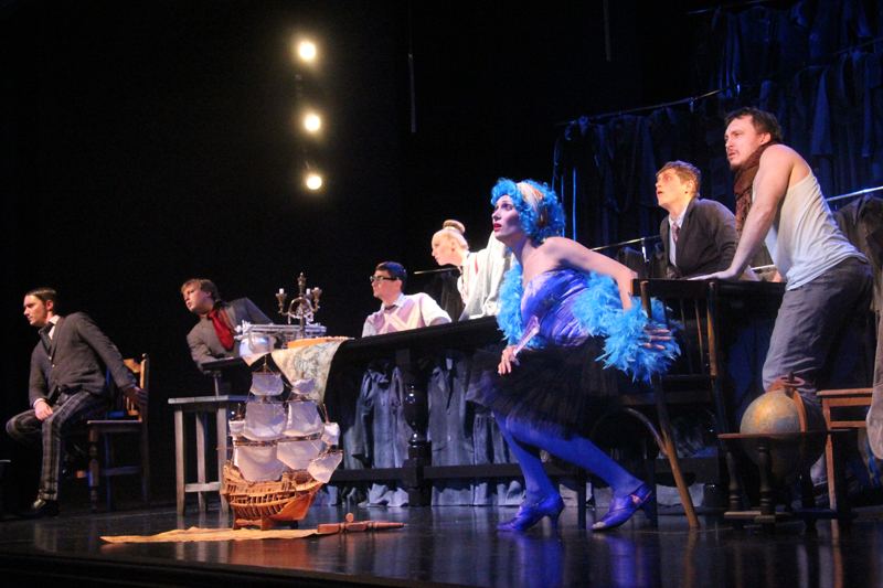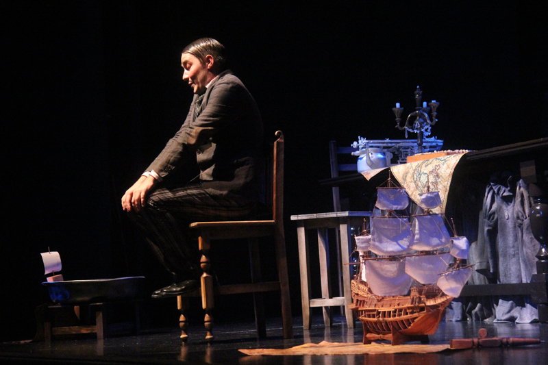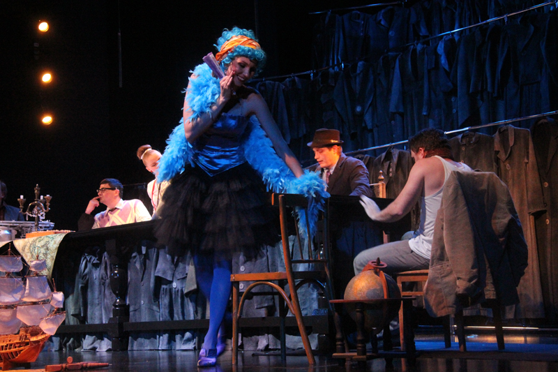 Художник Александр Ечеин создал на сцене удивительно мрачный, но яркий мир: мы словно внутри великанского гардероба, который, в свою очередь, находится внутри каюты, но эта каюта – не что иное, как клетка, ведь иллюминатор зарешечен. Это художественное воплощение идеи режиссера – многослойность событий, мыслей и образов раскрывается постепенно.