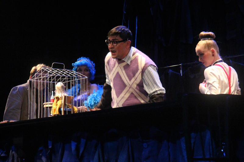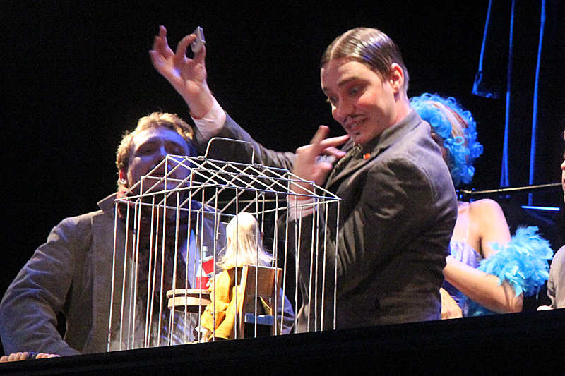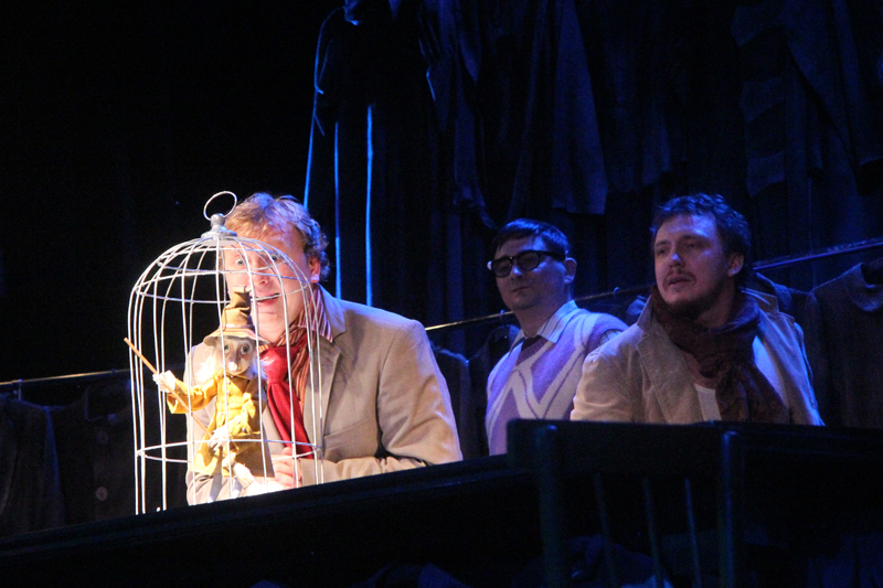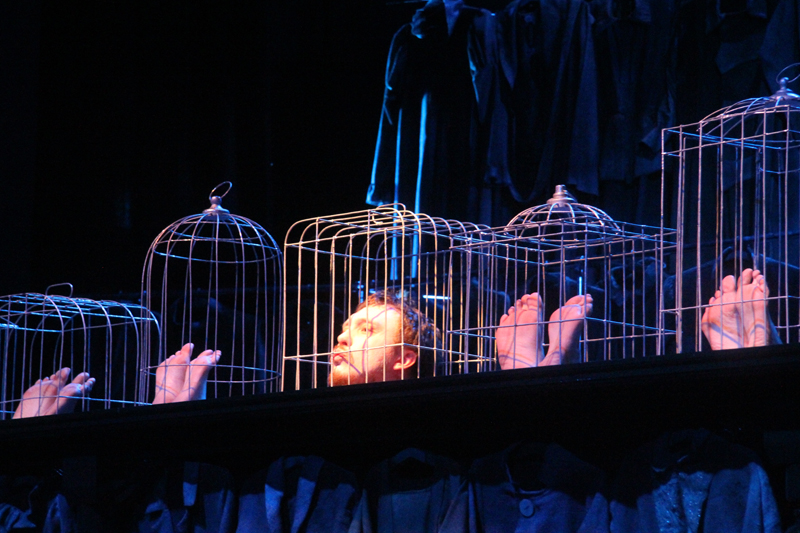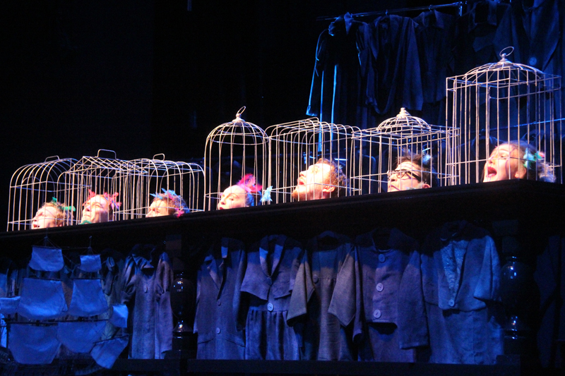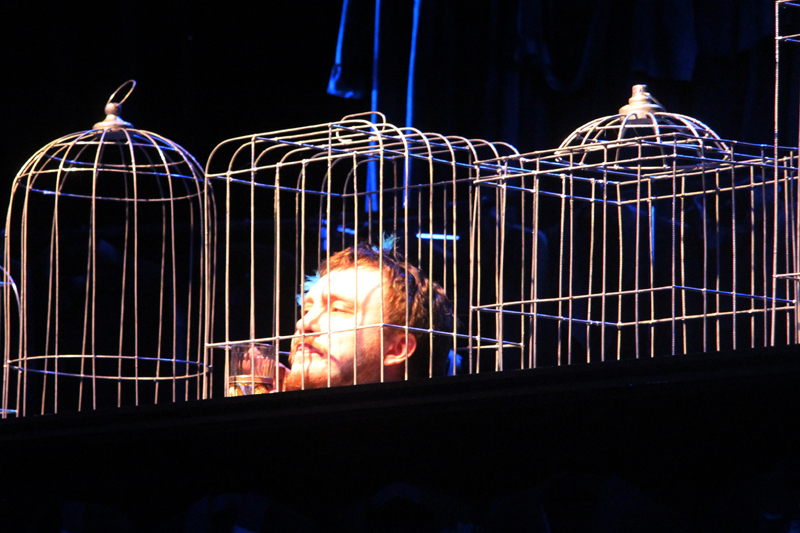 Но совсем скоро Гулливер поймет, что существование в клетке нельзя ничем оправдать: он сам попадает в клетку великана-птицелова. И вот уже на разные голоса отважный путешественник начинает уговаривать-угрожать-торговаться. Но новый хозяин глух к его мольбам, готовности унизиться и услужить. Зрители так и не увидят этого великана, лишь изредка он высунет то огромное ухо, то нос, то посмотрит нелюбопытным глазом. Вот и все, Гулливер примеривает на себя роль раба с таким же упоением, с каким в первом действии он был хозяином.