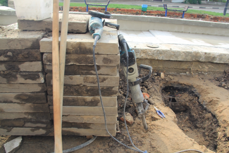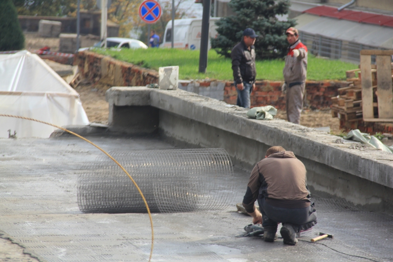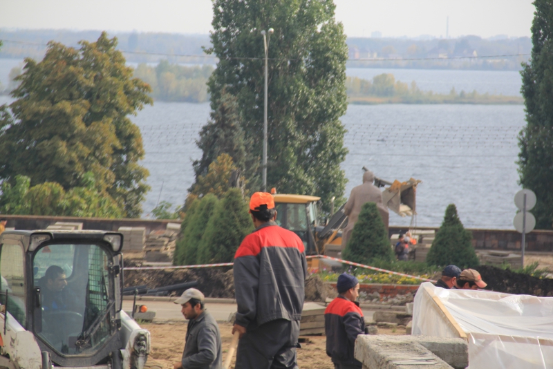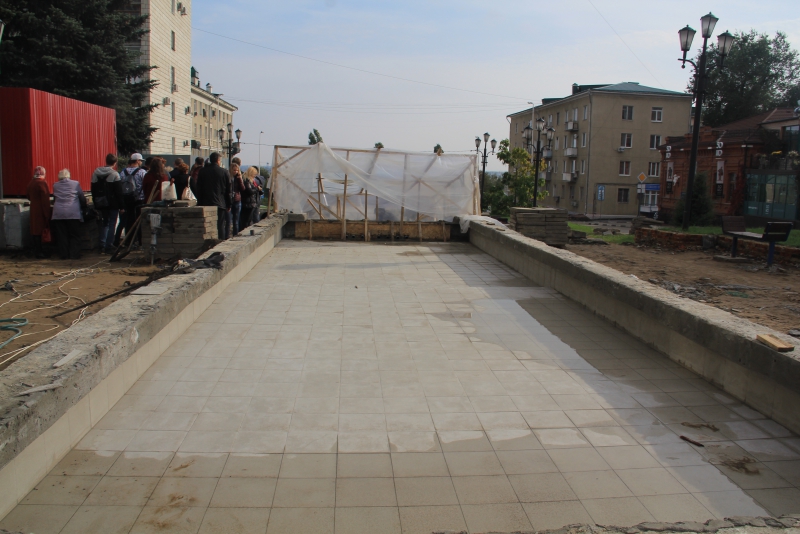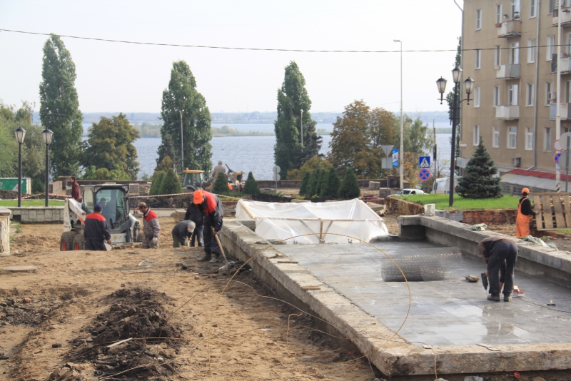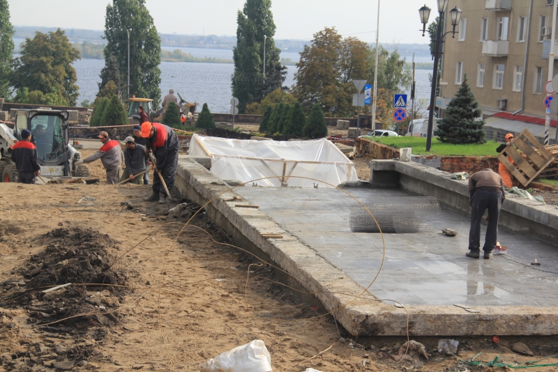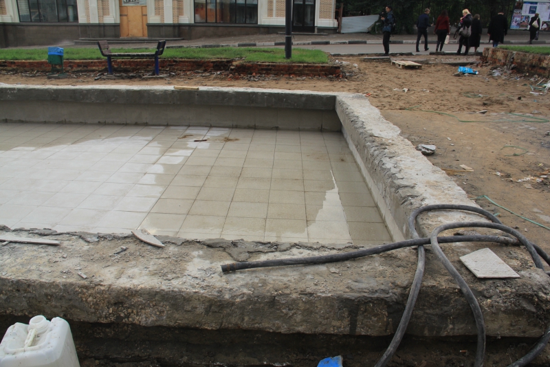 Рабочие полностью сняли плиты с тротуаров, демонтировали оборудование чаш бассейнов «Каскада». В настоящее время они занимаются вывозом снятого покрытия. На двух бассейнах проводится бетонирование. На объекте задействована техника и рабочие вольского предприятия «Автотрасса».