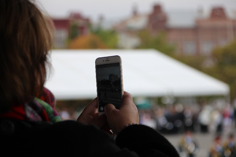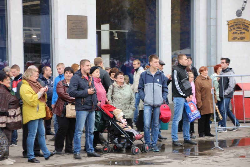 Посмотреть на парад пришло несколько сотен горожан, но пасмурная погода немного подпортила настроение зрителям и музыкантам. Пока музыканты строились и готовились к выступлениям, зрители позировали фотографам, улыбались и шутили. В первых рядах было много детей. Особый восторг к них вызвала красивая форма музыкантов и инструменты.