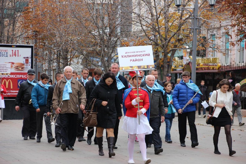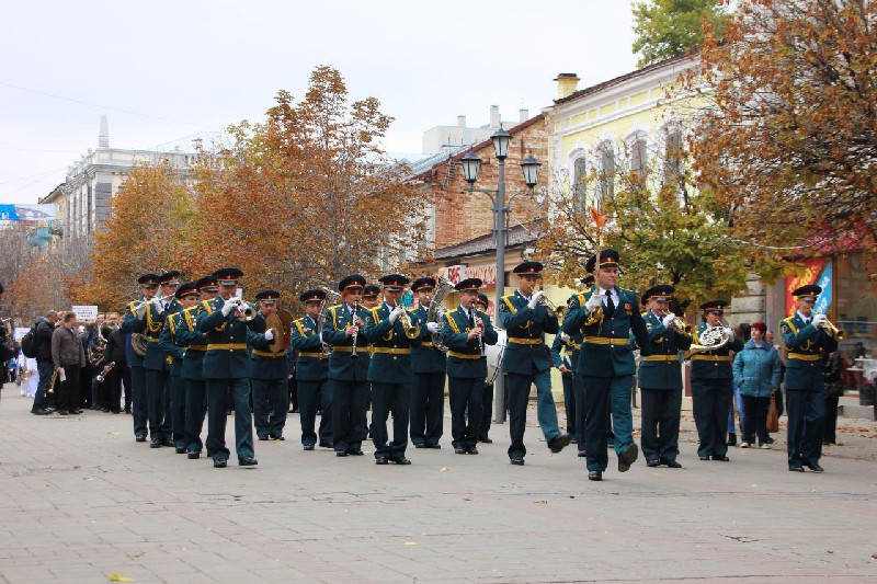 Вчера в Саратове состоялся парад духовых оркестров. Перед ним оркестры прошли шествием от проспекта Кирова, затем по улице Горького до Театральной площади, где и развернулись основные события.