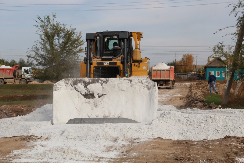 После того как сформируется слой из технического гипса, бригада приступит к укладке щебня. Далее, согласно технологии, разработанной кафедрой СГУ, придет черед асфальта.