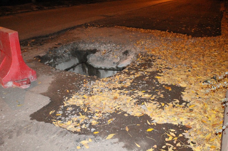 На недавно отремонтированном участке дороги по улице Степана Разина в Саратове образовался провал.