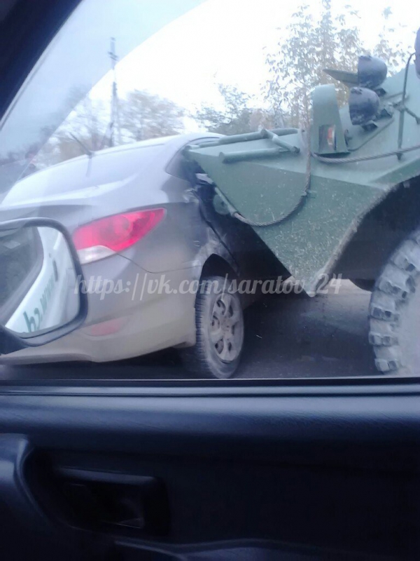 В Саратовском районе БТР протаранил «Хендай Солярис»