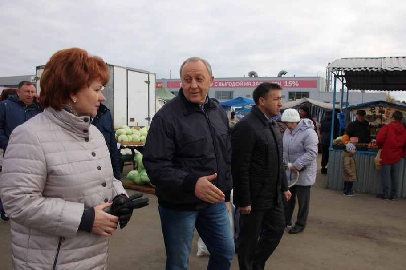 Валерий Радаев высоко оценил рынок, ровную площадку, на которой расположены ряды, но добавил, что территорию нужно увеличить. На что ему ответили, что ряды уже были расширены для удобства товаропроизводителей и покупателей.