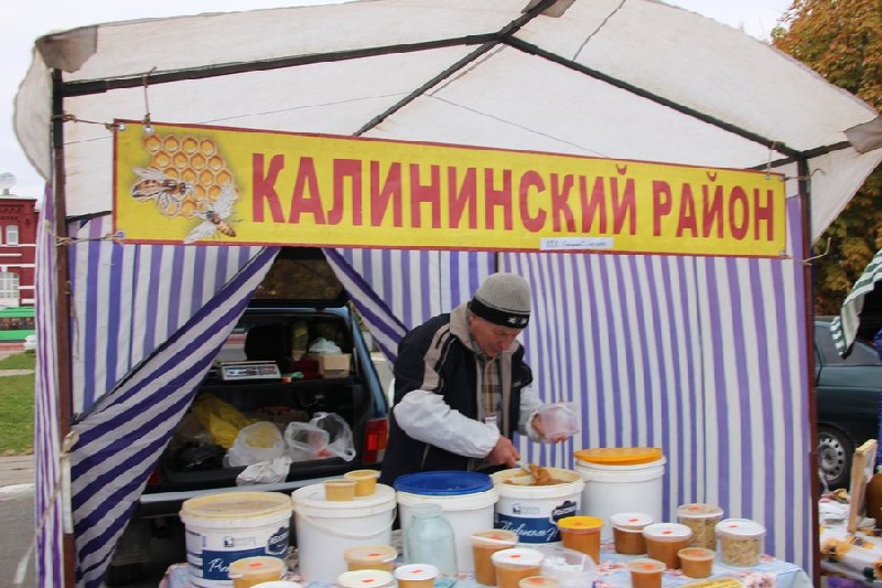 Над каждой торговой точкой висела табличка, откуда привезен товар. Кроме этого, было соблюдено разделение по принципу товарного соседства. Министр сельского хозяйства показала Валерию Радаеву выездную лабораторию ветеринарно-санитарной экспертизы. Она сказала, что специалисты могут взять пробу у любого товара, по которому у покупателей возникли сомнения. Внимание губернатора привлекло отсутствие грибов, но ему пояснили, что грибная продукция запрещена на сельскохозяйственных рынках.