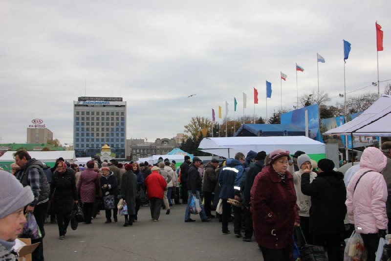 Министр сельского хозяйства Татьяна Кравцева рассказала, что всего работает 135 точек, но многих нет - продавцы уехали на ярмарку в центр города.