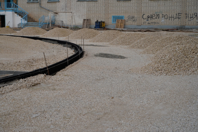 На площадке под водные горки завершены работы по заливке фундамента, а в настоящий момент изготавливаются металлоконструкции. Составлен график производства работ по монтажу водных горок, их планируют установить до 30 ноября.