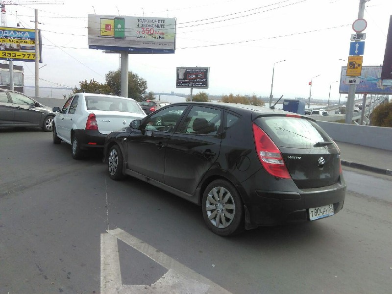 Участвующие в рейде инспекторы ДПС не обращают внимание на ДТП, которое случилось у них на глазах несколько минут назад на Предмостовой площади. Как передает корреспондент «Четвертой Власти» с места события, столкнулись две иномарки: «Хендай i30» и «Рено Логан». Повреждения у машин небольшие, но их остановка спровоцировала пробку, движение затруднено со стороны улицы Соколовой в сторону Энгельса.