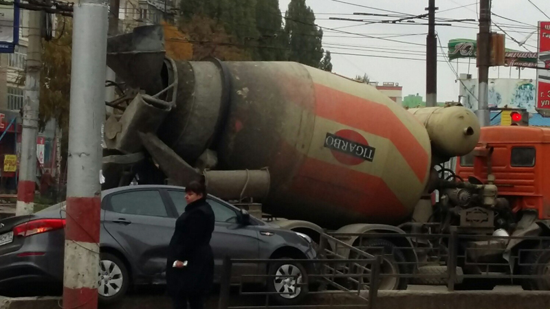 На проспекте Строителей иномарка влетела под бетономешалку