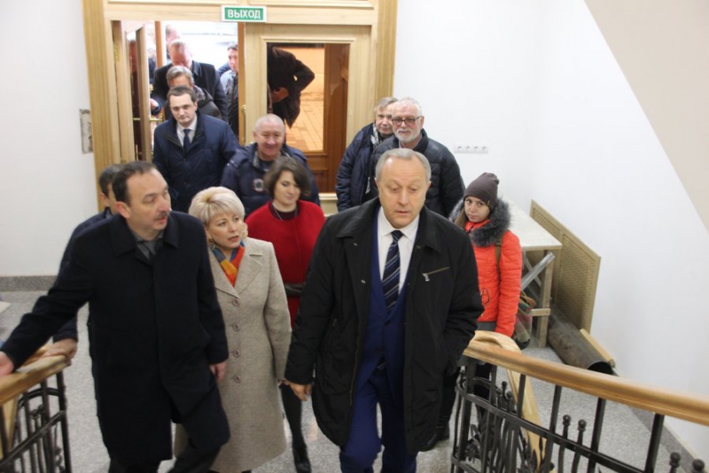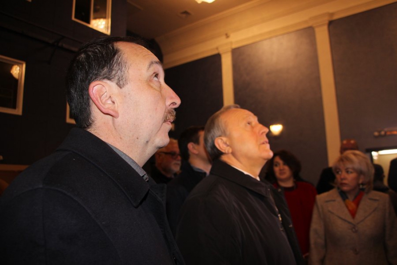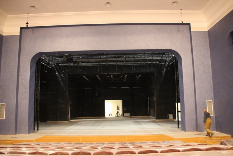 Губернатору показали отремонтированную главную сцену, она почти готова принимать актеров и зрителей. Валерий Радаев попробовал, мягкие ли кресла, и сказал, что зрителям должно быть удобно и комфортно. Далее губернатора провели в малый зал, гардеробную, он спустился в подвал.