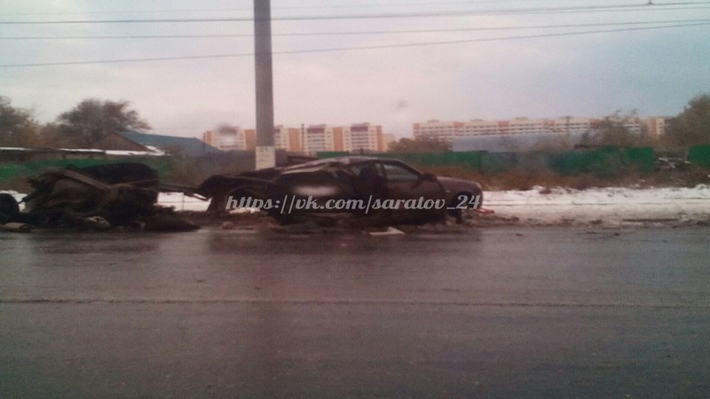 Сегодня в Кировском районе Саратова в результате дорожной аварии разорвало автомобиль. О происшествии рассказали пользователи страницы «Саратов онлайн» социальной сети в «ВКонтакте».