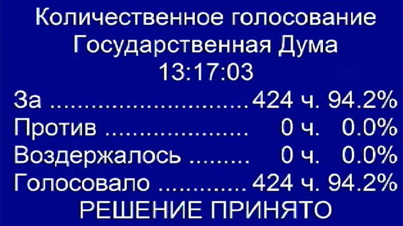 При принятии в 3-м чтении слово взял представитель ЛДПР Сергей Иванов: госдеп предпринял попытку раскритиковать проект. «Не надо бороться с природой», - призвал он. По его мнению, нужно просто принять все как есть и «начать работать».