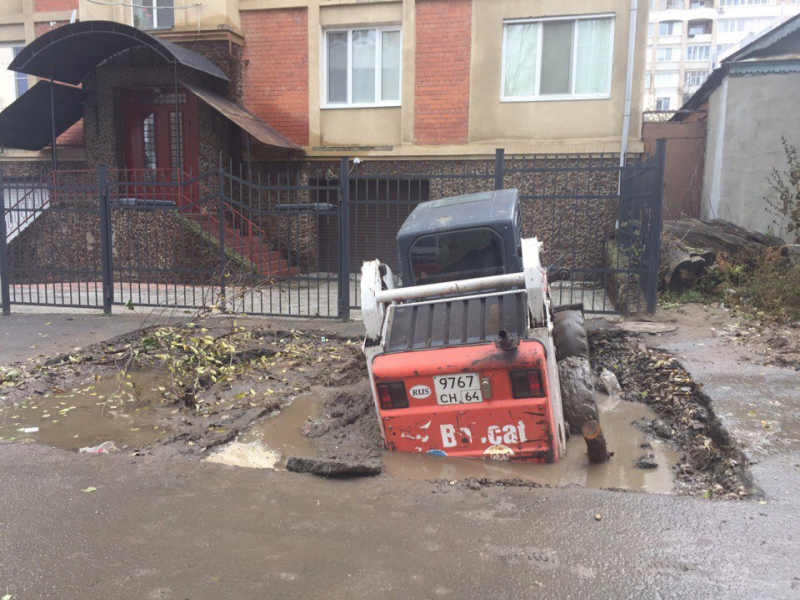 Сегодня в Волжском районе Саратова бобкэт провалился в яму. Инцидент произошел у дома 4/20 на улице Малая Затонская. Об этом сообщают пользователи страницы «Местоположение ДПС-Саратов Энгельс» соцсети «ВКонтакте».