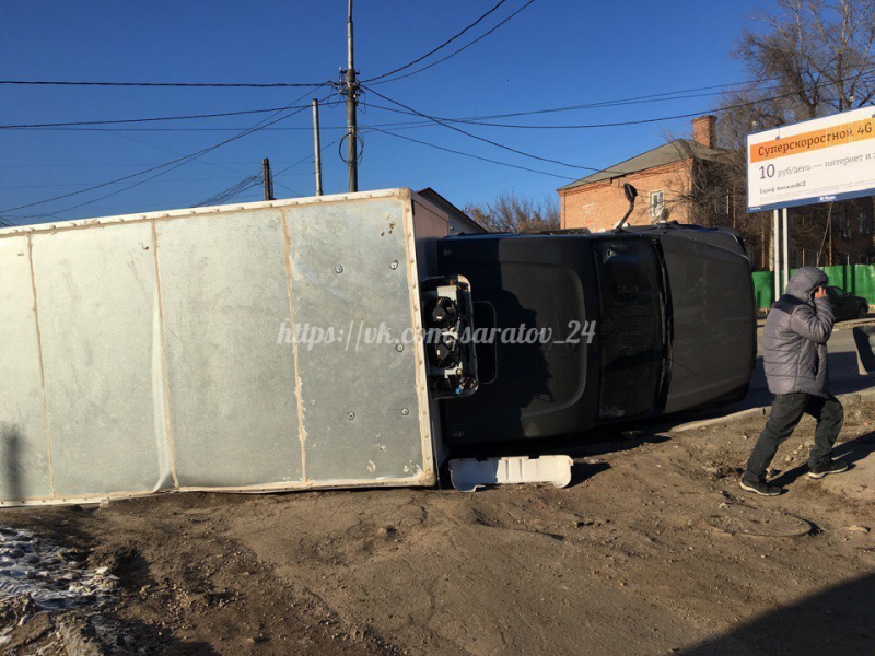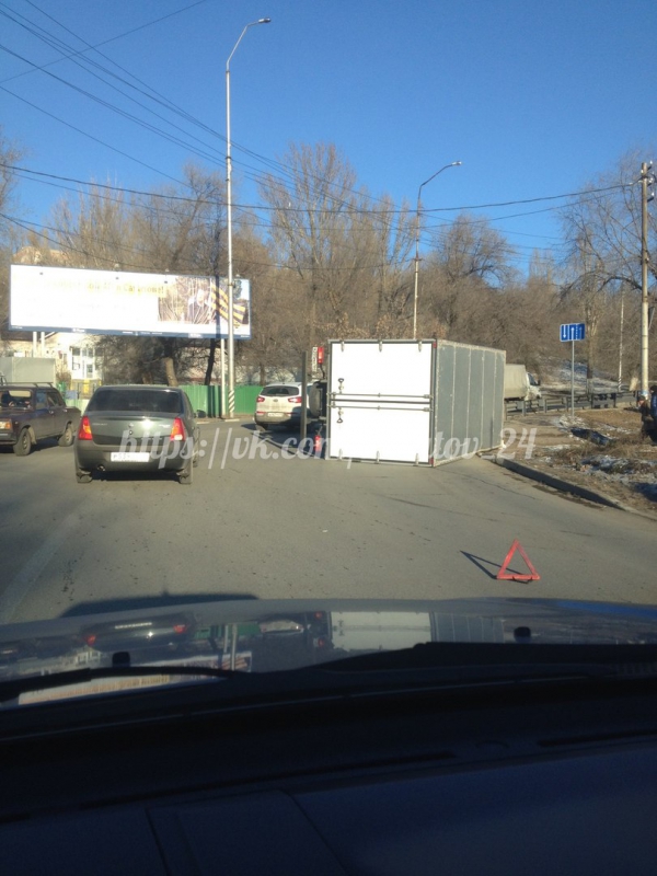Сегодня в Волжском районе Саратова опрокинулась на бок грузовая автомашина. Об этом сообщают очевидцы происшествия в социальных сетях.