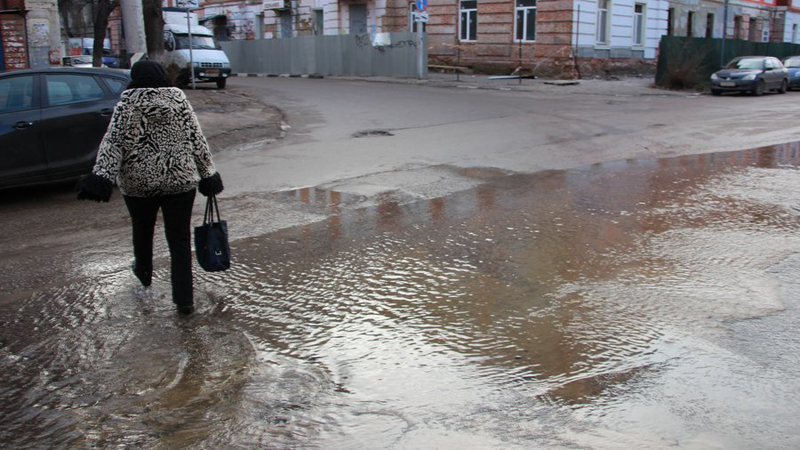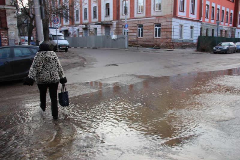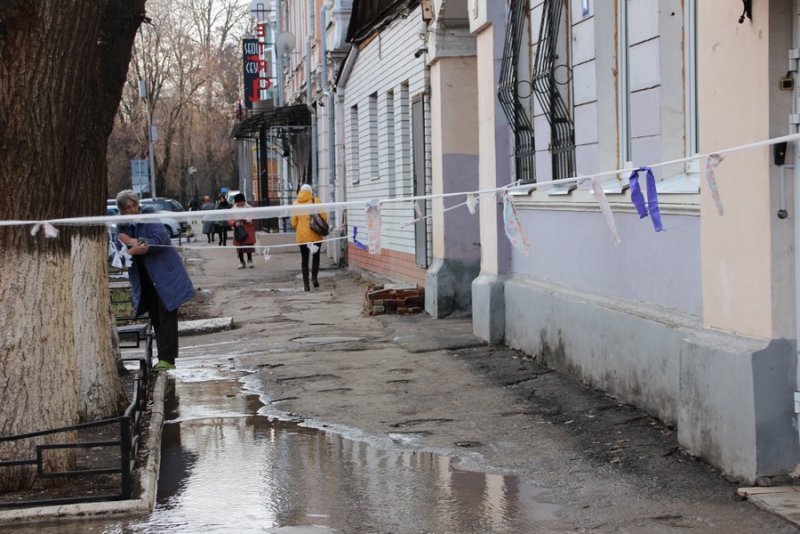 Из-за коммунальной аварии холодная вода со вчерашнего вечера заливает центральные улицы Саратова. В связи с этим у пешеходов возникают сложности при переходе дороги и движению по тротуару.