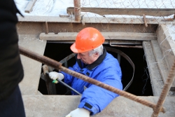 Сейчас там ведутся подготовительные работы к возведению нового участка. Все это происходит на глубине 50 метров. Чтобы спуститься в шахту, необходимо преодолеть многочисленные лестницы, лифт используется исключительно для переправки материалов. Облачившись в спецодежду, Валерий Сараев в сопровождении главы администрации района Валерия Васильева и и.о. гендиректора «Саратовводоканала» Павла Ворсунова направился непосредственно к месту работ.